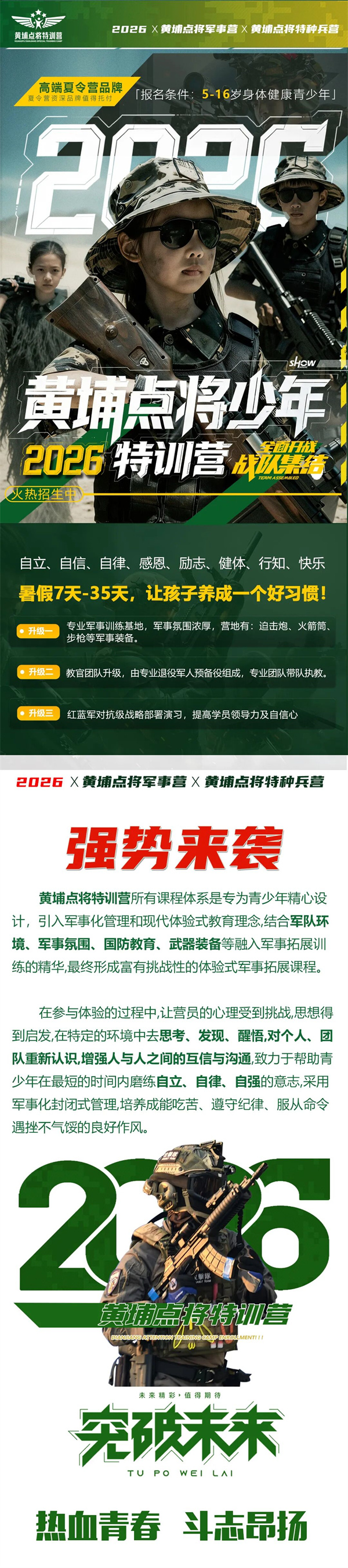 师资配比:教官1:6-8学员(24小时陪同,同吃同住同训练同学习同娱乐)