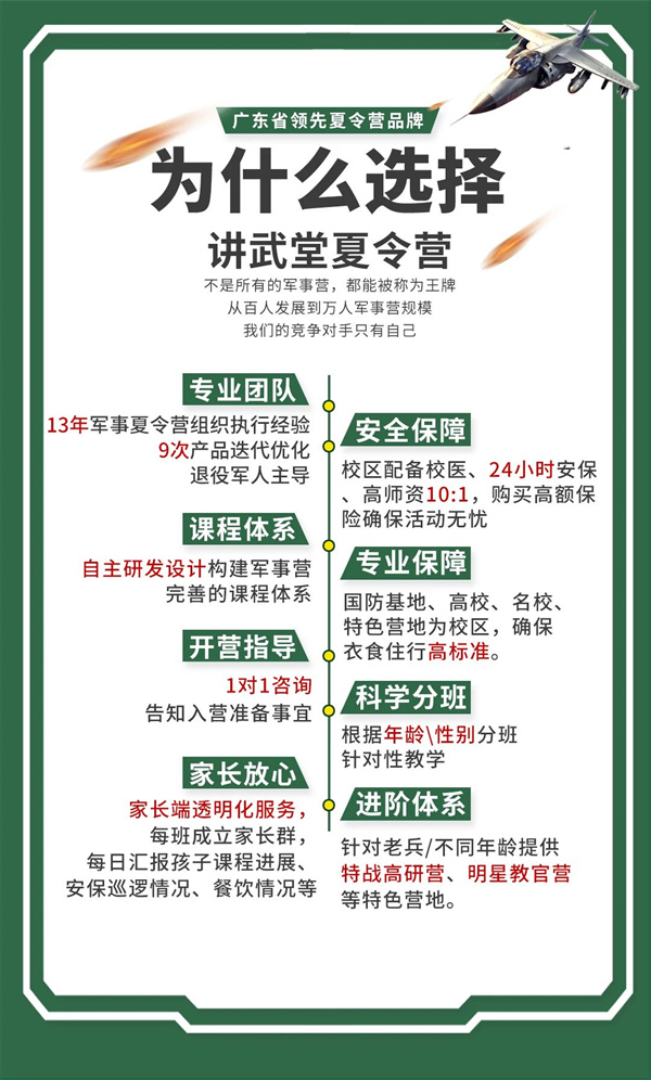 师资配比:7:1(20人一个班,一个教官,一个老师,还有摄影,高师资配比保证训练质量。校卫队,宿管阿姨24小时巡逻)