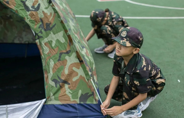 令行禁止,服从指令。从个人衣物到行为举止,都代表着军人的风貌。严格的作息条例(早6晚9),标准的内务整理(横平竖直),文明的言行举止(禁止脏话)。营员从入营的第一天起,学习独立生活,愿意接受军事课程的锻炼,尝试迎接新的挑战。洗衣服,军事训练,酷暑挑战,野外生存,夜行军8-12km,魔鬼训练,真人CS,感恩课程等。