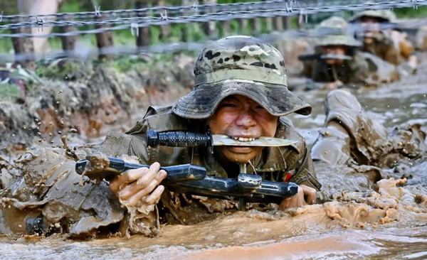 | 下午 | 送战友:铁打的军营流水的兵,耳边响起驼铃声 ,与将要结营战友 依依惜别; 水下蹲举:全副武装 95 高举头顶 ,在水里 20 个蹲举; 泥潭战术:泥潭爬行 、水中匍匐 、倒功摔擒。 |